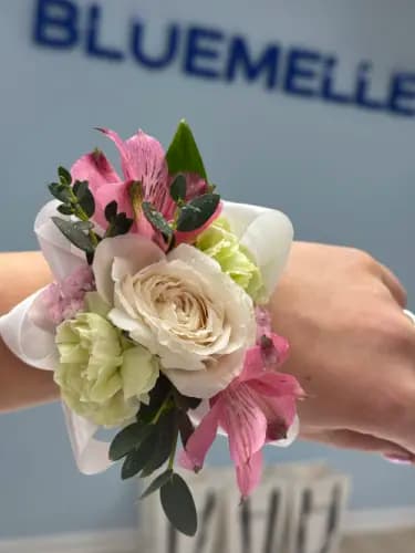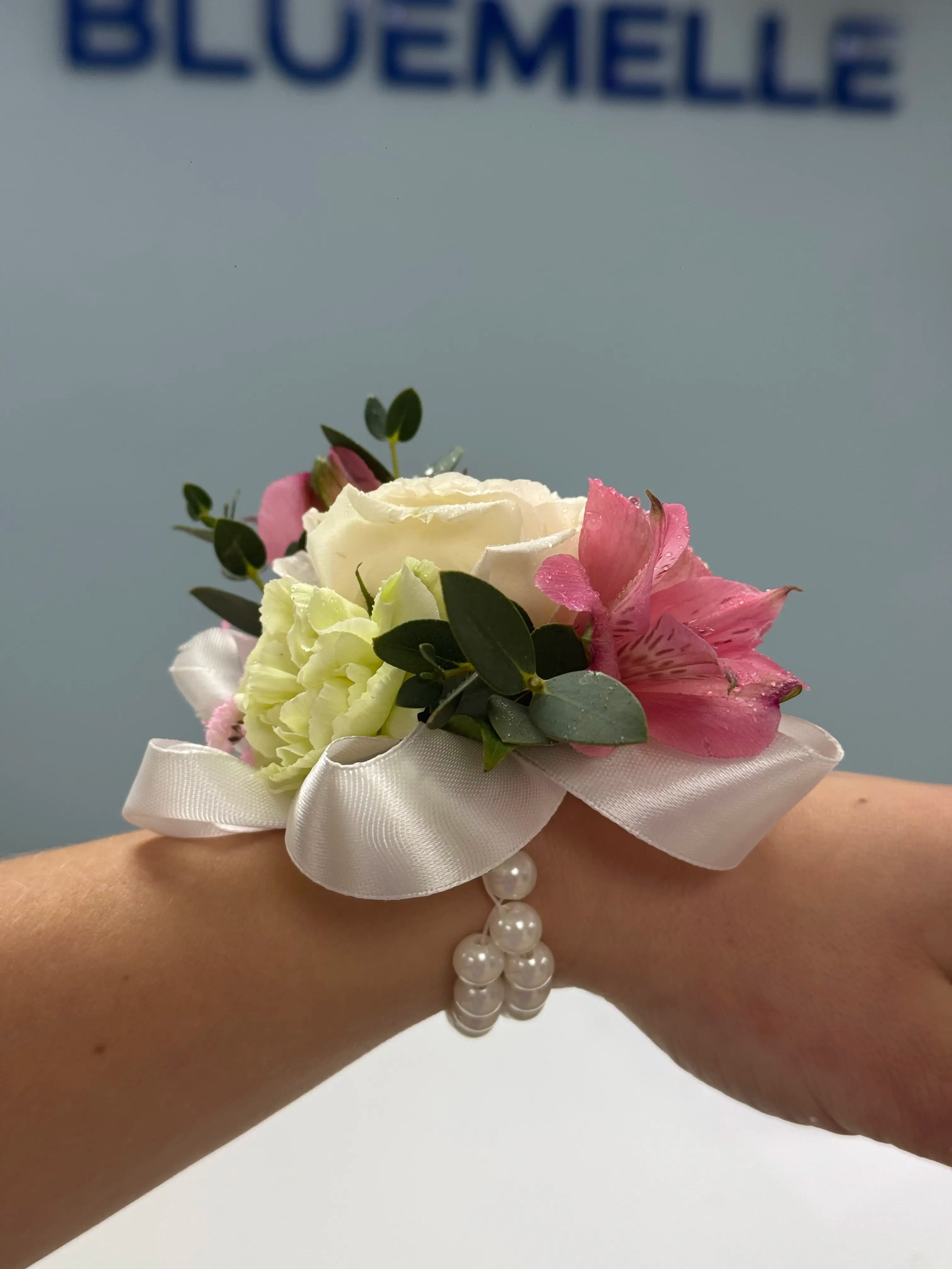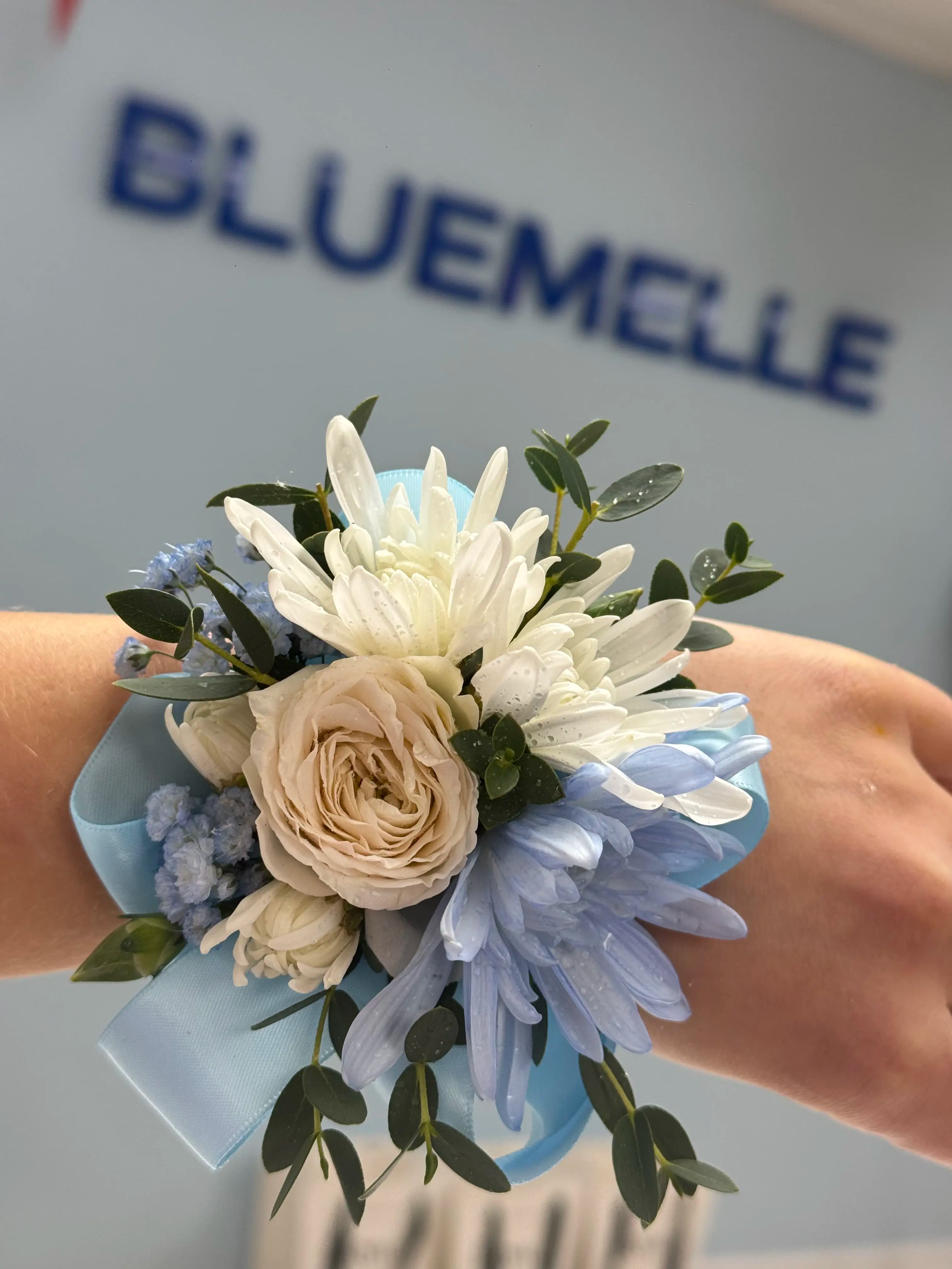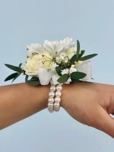 The White Bloom Corsage & Boutonniere Set is a refined floral pairing created for elegant celebrations and special occasions.
